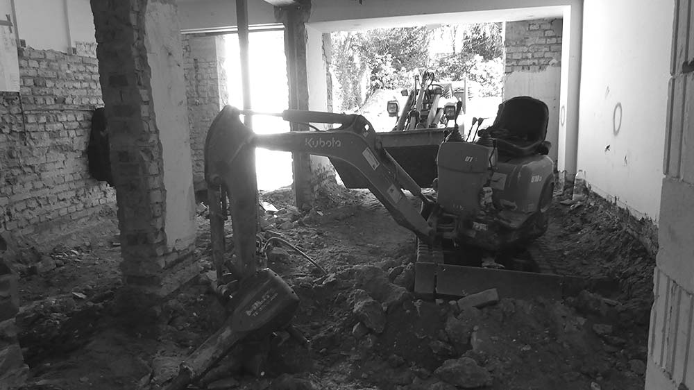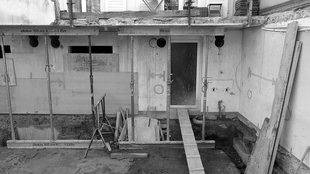 Unterfangungsarbeiten zur Tieferlegung der Bodenplatte